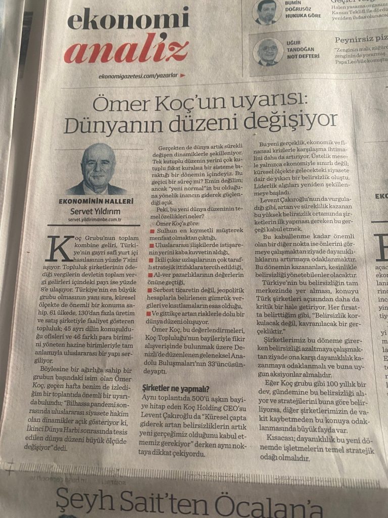 Dayanıklılık işletmelerin yeni dönmede TEMEL STRATEJİSİ OLMALIDIR.Dünya temel bir kırılma noktasında ,maalesef temel değerler önemini yitiriyor.Belirsizliklerle dolu bir döneme giriyoruz .Deniz fırtınalı ,o halde dayanılıklığımızı arttırmalı ve gemimizi elden geldiğince sağlamlaştırıp ,sadeleştirmeli ,konsantrasyonumuzu bu hususları dikkate alacak şekilde arttırmalıyız.